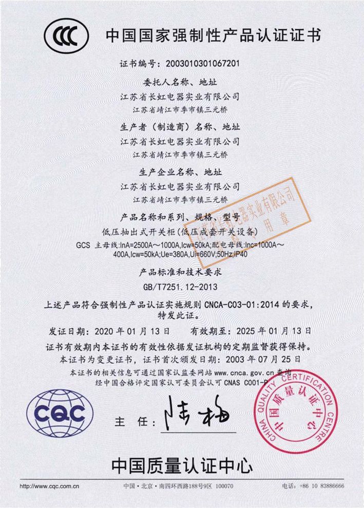 產品均已通過了由國家權威機構進行的型式試驗,并于2003年通過了CCC強制性產品認證。